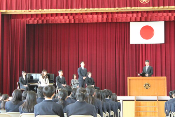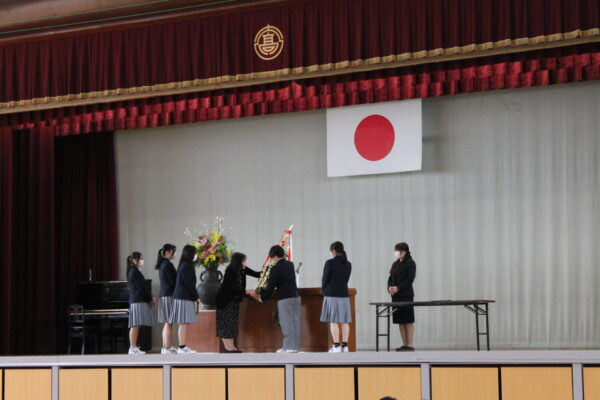 生徒会役員認証式・表彰式を行いました。